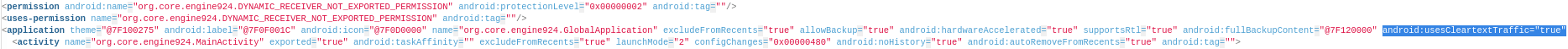 Также в манифесте имеется ключ - usesCleartextTraffic=true, который означает что HTTP-трафик передаётся в открытом виде (без шифрования).