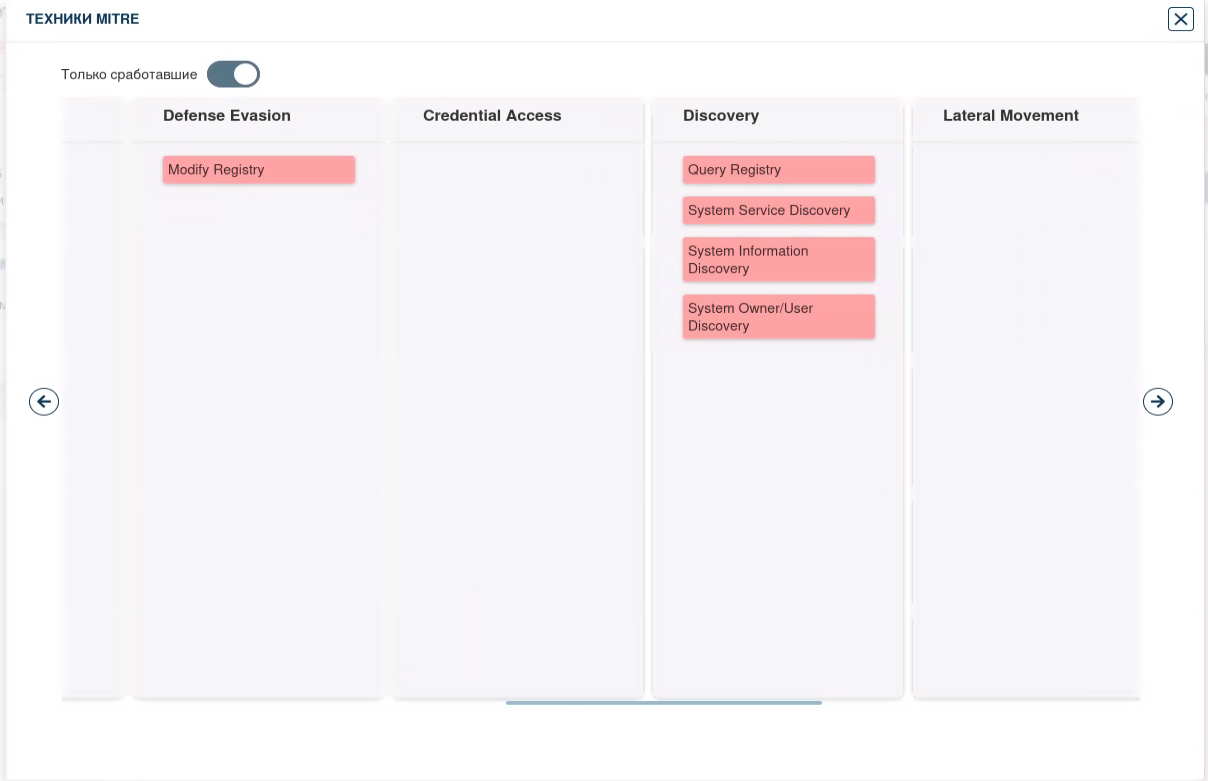 - Query Registry - злоумышленники могут взаимодействовать с реестром Windows для сбора информации о системе, конфигурации и установленном программном обеспечении.