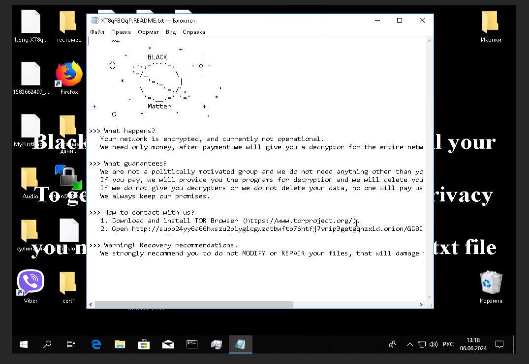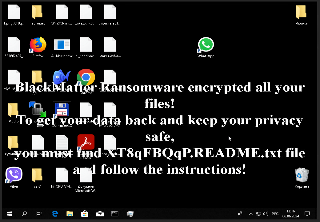 Когда BlackMatter попадает на компьютер пользователя и файлы на дисках зашифровываются, программа-мошенник устанавливает обои, очень похожие на те, что установлены в DarkSide. Подобно DarkSide и REvil, BlackMatter использует API среды выполнения, который может препятствовать статическому анализу, а строки шифруются и раскрываются во время выполнения.