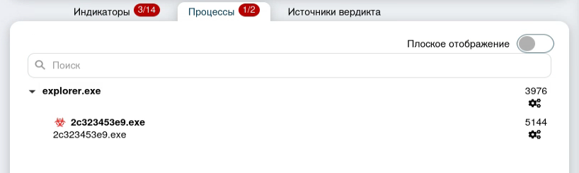 Вкладка «Источники вердикта» показывают все источники (статические и динамические), которые сработали и вынесли вердикт, кроме вердикта «Не определен»