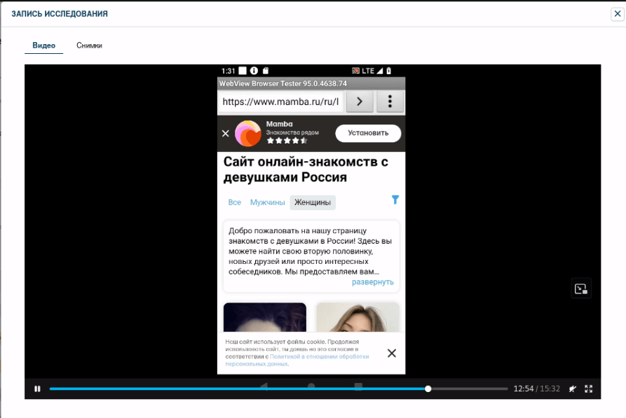 Динамический анализ проводился в изолированной среде, созданной в системе ATHENA, на основе виртуальной машины, с OC Android 12.