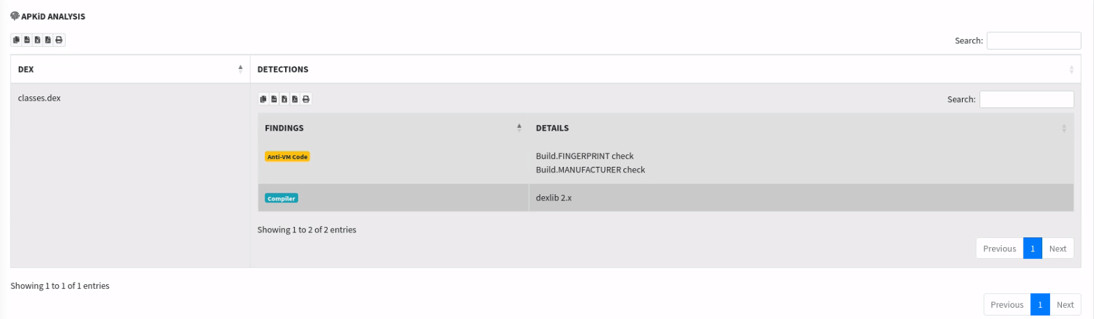 Анализ APKID показал наличие Anti-VM-проверок (Build.FINGERPRINT, Build.MANUFACTURER) — приложение определяет эмулятор и прекращает активность при обнаружении виртуальной среды. Это объясняет сложности при запуске динамического анализа.
