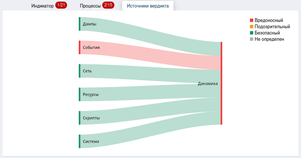 Вкладка «Источники вердикта» можно ознакомиться с основными резуль-татами статического анализа.