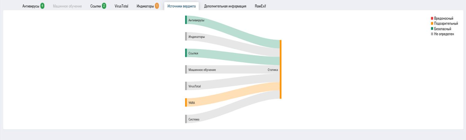 Во вкладке «Источники вердикта» можно ознакомиться с тем, какие источники посчитали файл вредоносным.