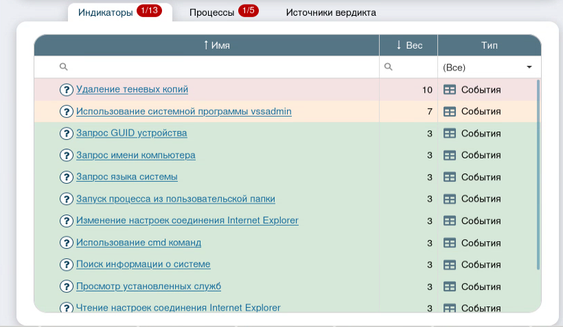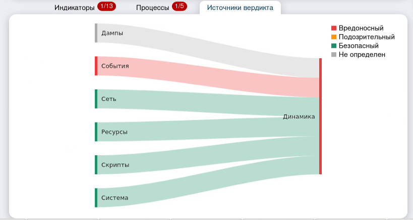 Вкладка «Источники вердикта» показывают все источники динамического исследования, которые сработали и вынесли вердикты