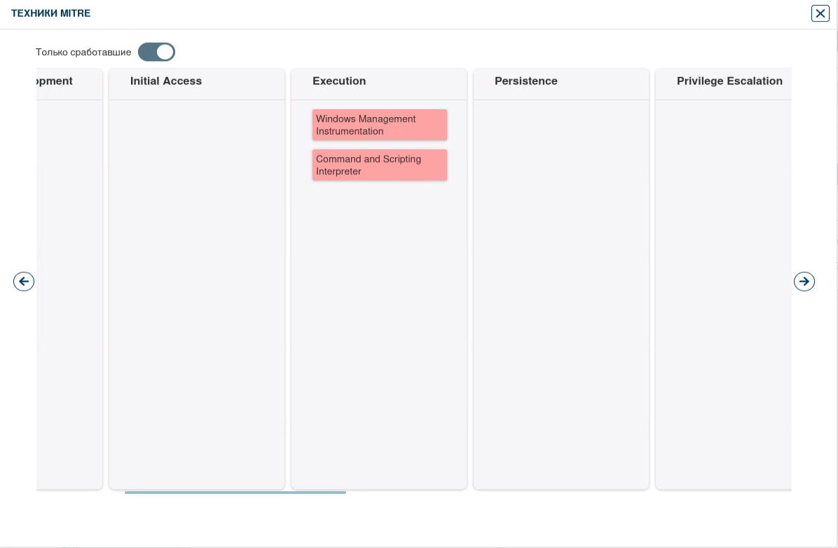 Вкладка «Техники MITRE» показывает, какие техники отработали на данный файл.
