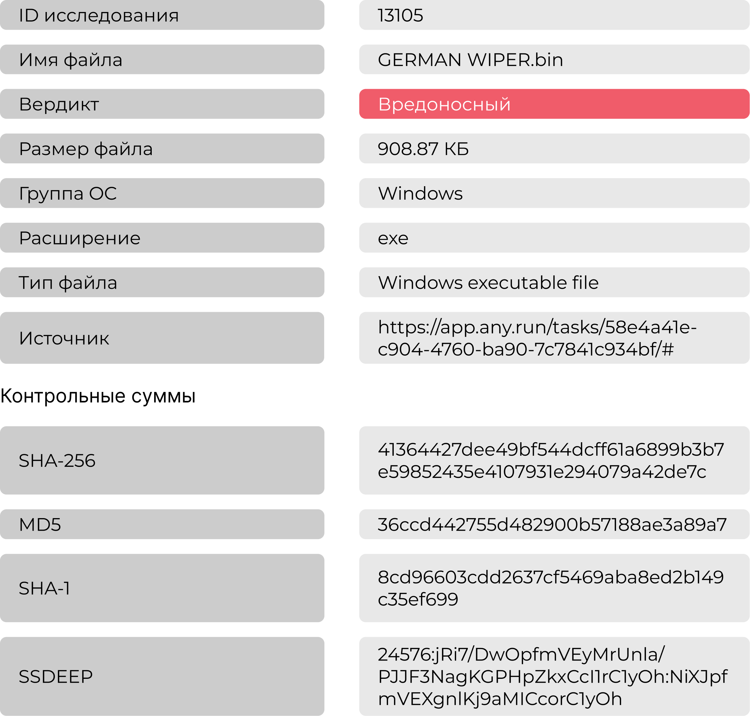 Активность этого вредоносного программного обеспечения была в конце ноября - начале декабря 2022 г. Атаки ориентированы на российские мэрии и суды.