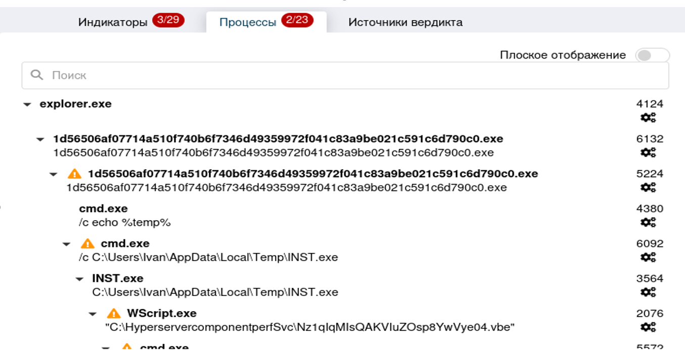 2) Command and Scripting Interpreter. Сработавшие индикаторы: Использование cmd команд.