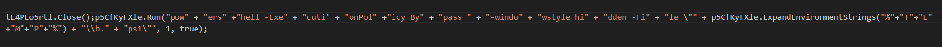 После объявления переменных файл создает в директории файл «%TEMP%» с именем b.ps1 и исполняет его инструкции: