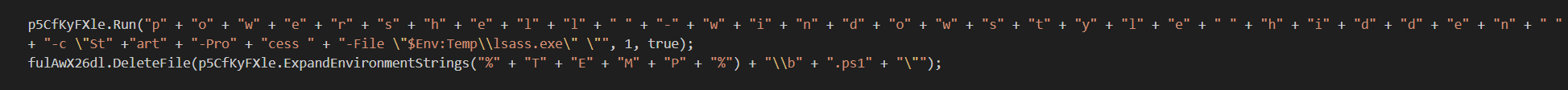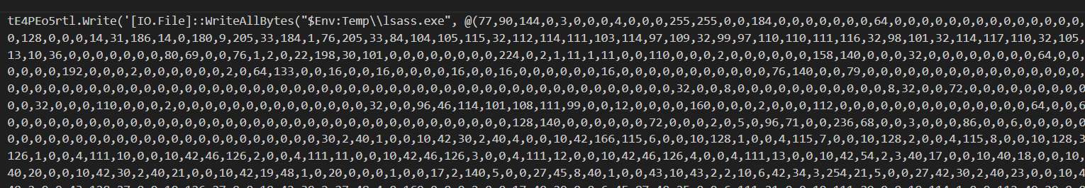 Скрипт для powershell создает в директории «$Env:Temp» исполняемый файл с именем системной службы lsass.exe.