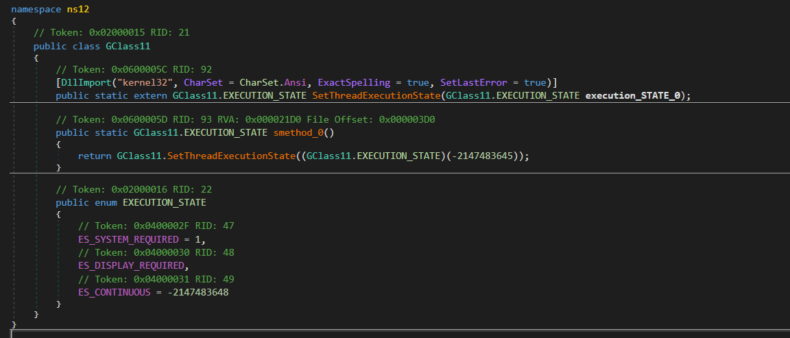 Вредоносное ПО использует API «SetThreadExecutionState», при помощи которого предотвращает переход системы в «спящий» режим.