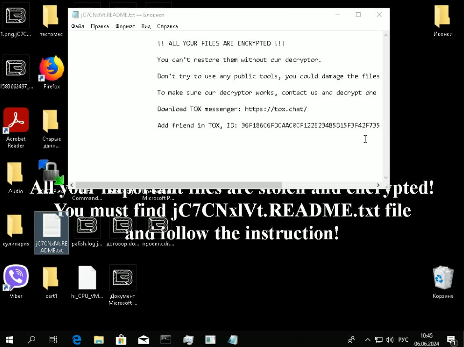 Открыв текстовый файл, мы видим послание о том, что все наши файлы зашифрованы и необходимо оплатить некую сумму в виде криптовалюты. Также, меняется заставка рабочего стола.