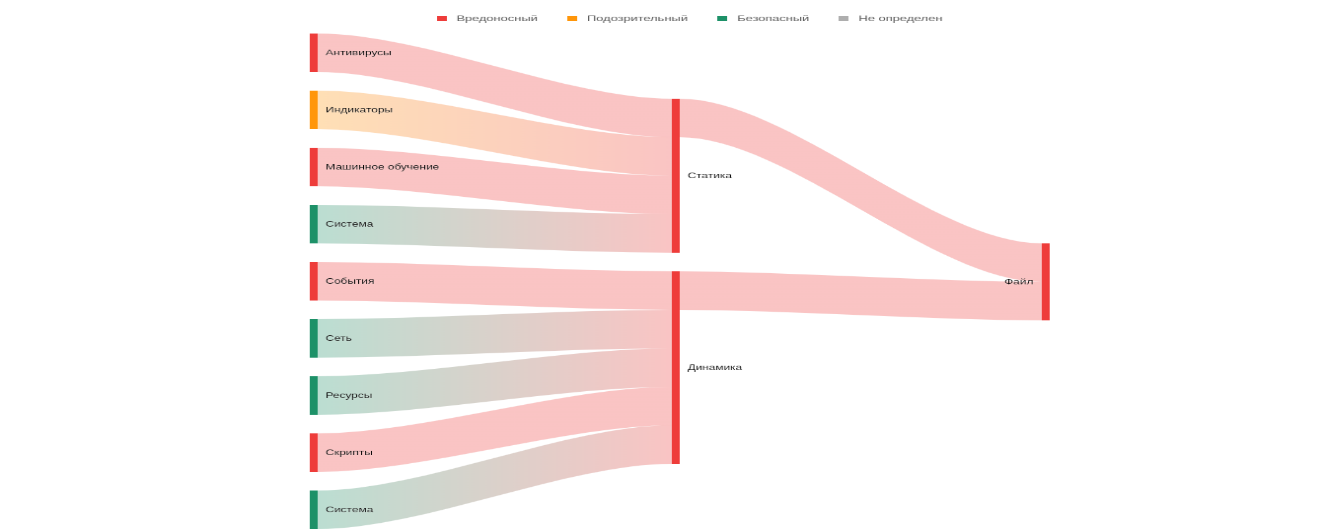 Во вкладке «Источники вердикта» строится графическая карта с источниками и их вердиктами, а также общим вердиктом по исследуемому файлу со стороны статического анализа (Рисунок 3).