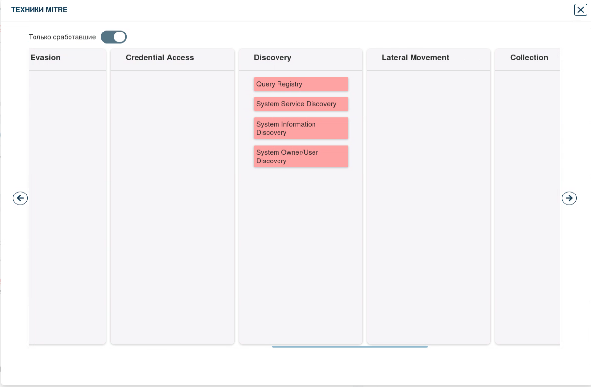 - System Service Discovery - злоумышленники собирают информацию о зарегистрированных сервисах, чтобы формировать последующее поведение. Для получения информации могут применяться утилиты операционной системы Tasklist и Net, а также другие инструменты.