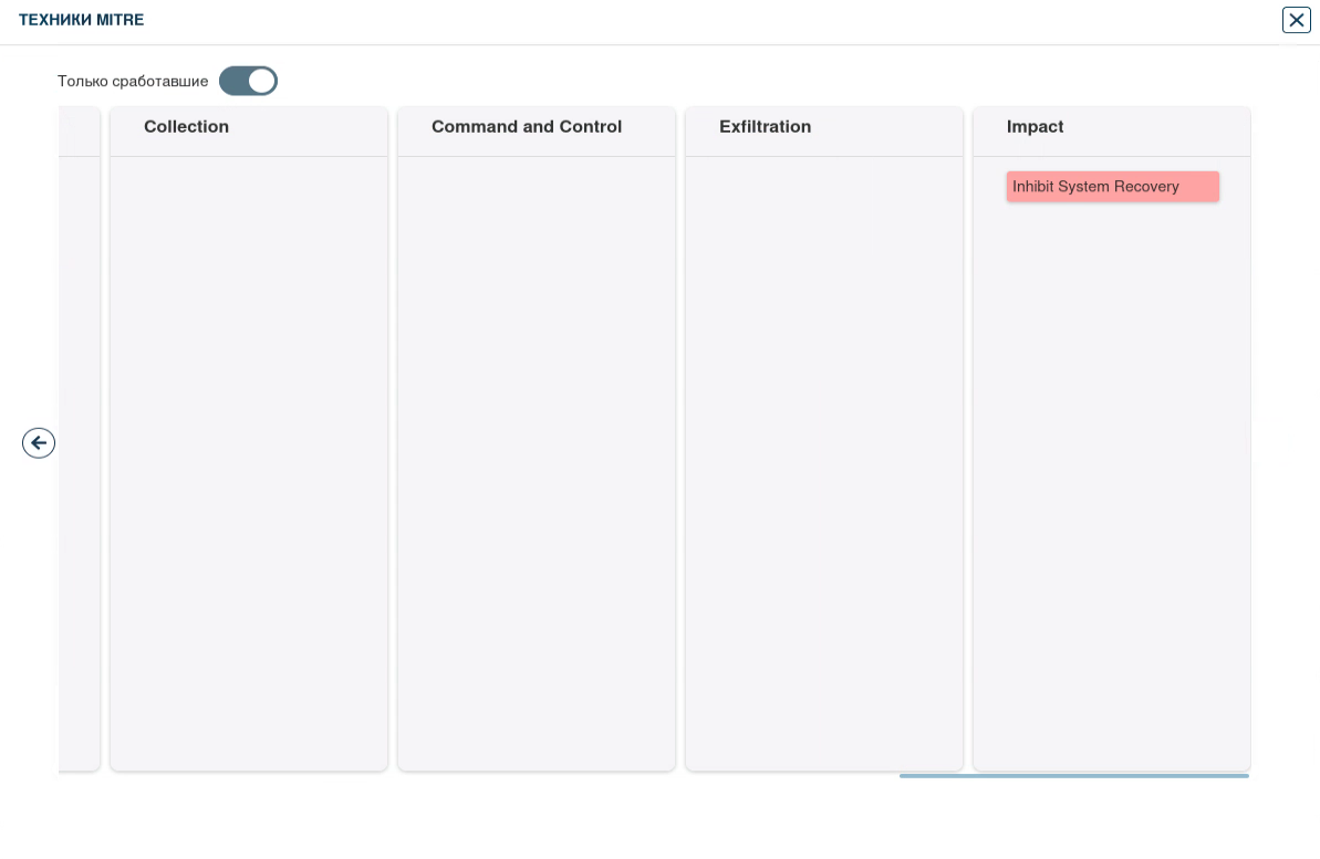 - Inhibit System Recovery - злоумышленники могут удалять данные операционной системы и отключать службы, предназначенные для помощи в восстановлении поврежденной системы, чтобы предотвратить восстановление. Злоумышленники могут использовать утилиты Windows для отключения или удаления функций восстановления системы, чтобы усилить последствия уничтожения или шифрования данных.