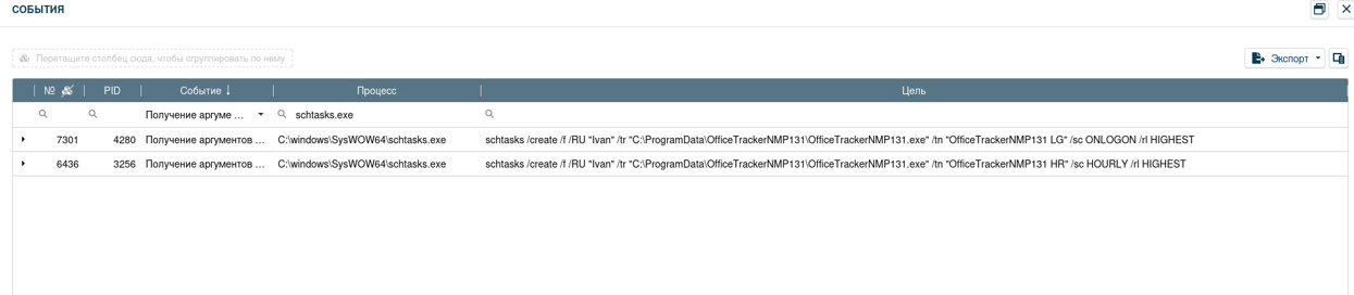 1) индикатор «Планирование заданий в планировщике задач Windows» - ПО планирует задания в планировщике задач Windows, что является нелегитимным действием;