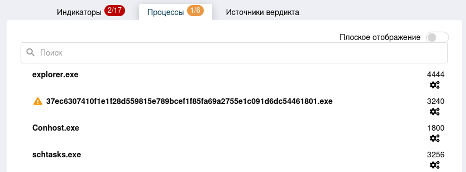 2) индикатор «Запись в память системного процесса» - запись в память системного процесса используется вредоносным ПО для исполнения своего кода от имени системного процесса;