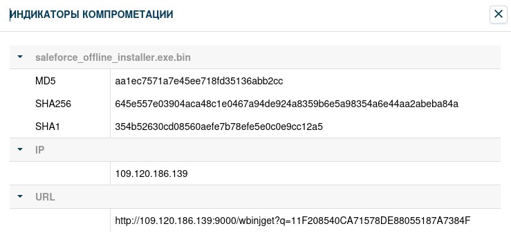 В окне «Индикаторы компрометации» контрольные суммы и IP-адреса с вредоносным содержимым: