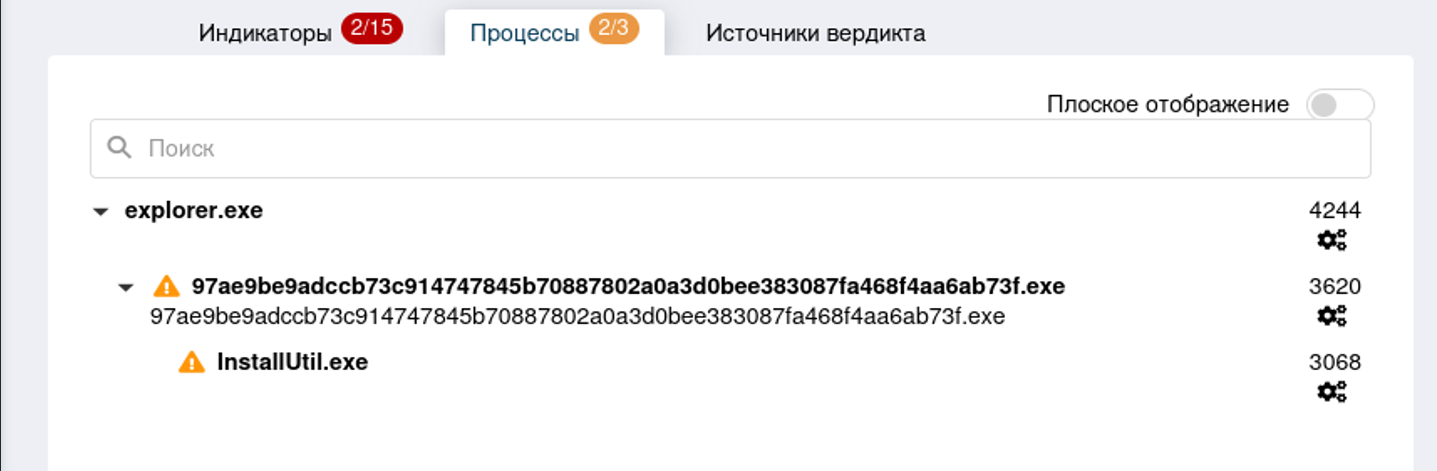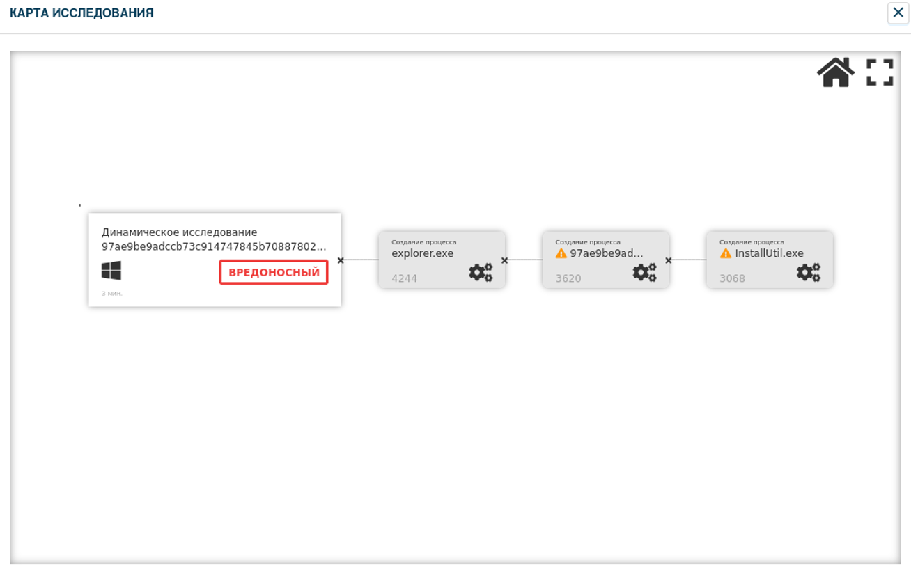 Среди системных программ, выявленных в процессе динамического исследования, была выявлена InstallUtil.exe